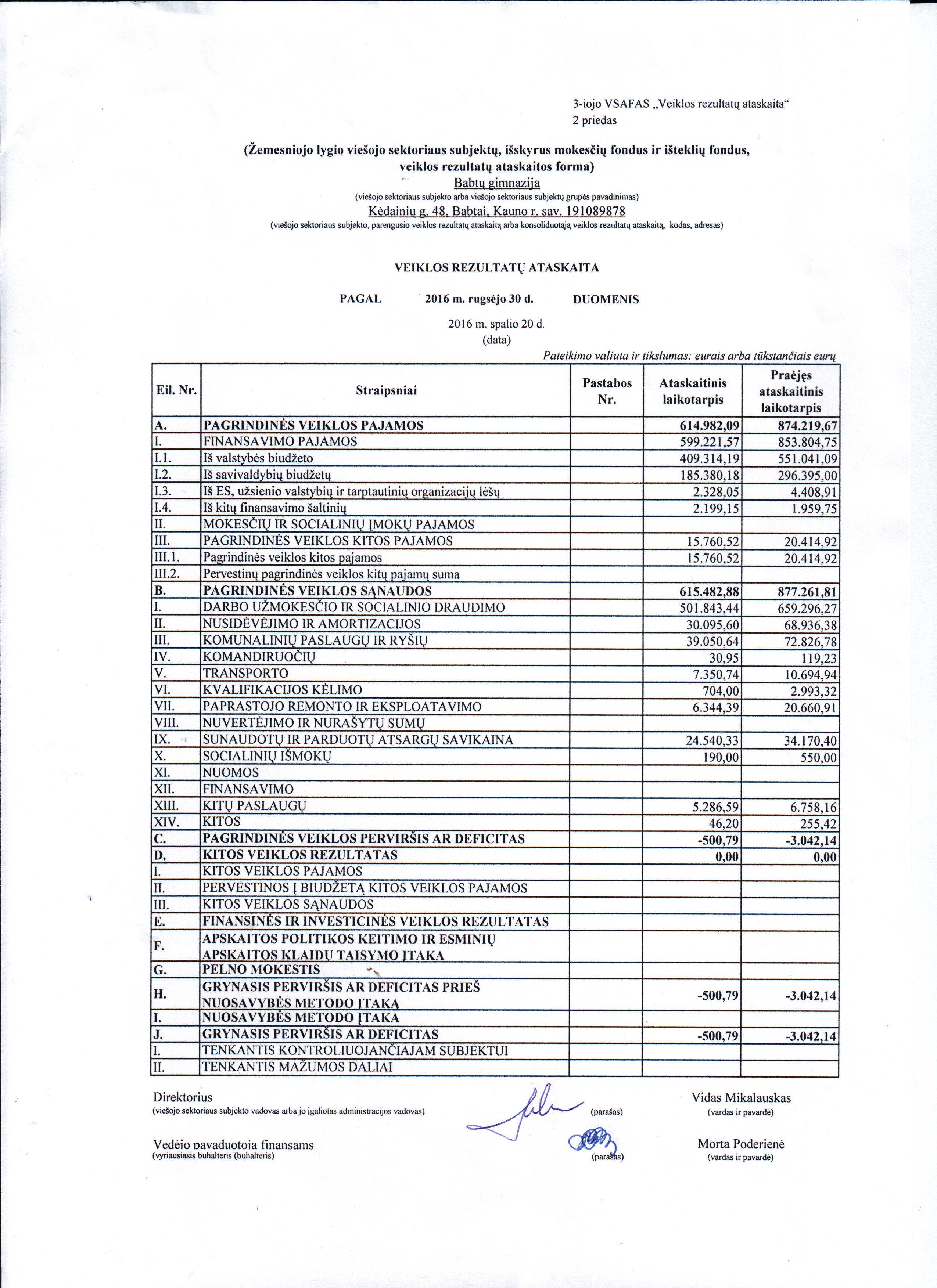 2016 m. III ketv. veiklos rezultatų ataskaita